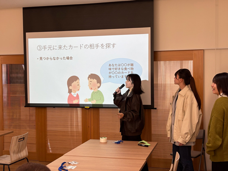 そして、大学を拠点として、学生が考えたアイスブレイクによる脳トレや、大学内のチェックポイントを回って健康づくりを行う「学内オリエンテーリング」を行いました。また、㈱ウェルハムフーズ岡山から無償で提供を受けた「森林どり」を学生が料理して、参加者に振る舞いました。