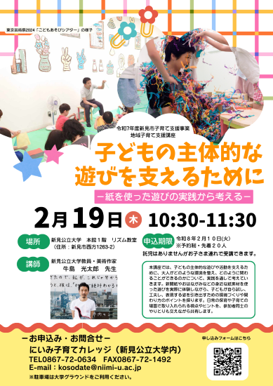 今回は「子どもの主体的な遊びを支えるために~紙を使った遊びの実践から考える~」をテーマに講座を行います。