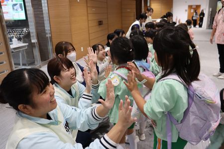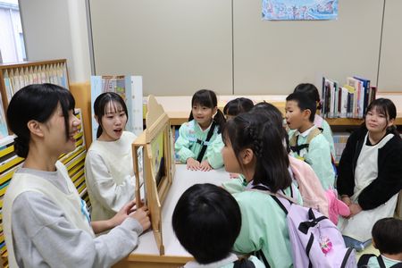 初めて新見公立大学に来て、いろいろなものに興味を持ち、楽しんでいる姿が見られてとても嬉しかったです。手を繋いで一緒に学校を探検したり、紙芝居に興味をもって見てくれたり、「これ楽しかった!」と沢山報告してくれたりして、短い時間でしたが、とても充実した時間になったのではないかと思います。最後はみんなでにーみん体操を踊って、子どもたちのキラキラした笑顔が見れてとても楽しかったです。(4年:吉村小鳥)