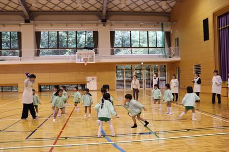 アリーナ(体育館)で、「だるまさんがころんだ」をしました。