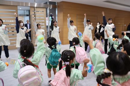 くらしき幼児教育ネットワークの交流事業の一環で、倉敷市から、学校法人みのり学園みのり幼稚園5歳児のみなさんが、新見公立大学に遊びに来てくれました。