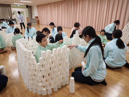 大量の紙コップで、素敵な作品ができました。片付けも楽しかったですね。