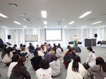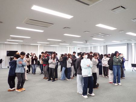 後半には、身体と心を使ったコミュニケーション・ワークショップが行われました。言葉だけに頼らず、全身を使って他者と関わること、そして何より楽しむことの大切さを通して、学生たちはコミュニケーションの本質を体験的に学びました。