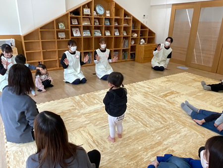 なかなか全員の予定が合わず、直前にリハーサルを行ったため当初は上手くできるか不安を感じていました。しかし、実際に子どもたちの前に立つと、たくさんの笑顔を見ることができ、そのおかげで緊張もほぐれ、自分自身も楽しみながら子どもの前に立つことができました。子どもたちと過ごした時間はとても楽しく、心に残る経験となりました。4月から新見市の保育士として働くため、これから子どもたちに会えるのがますます楽しみになりました!普段なかなか見ることのない親子の関わりを見ることができ、とても温かい気持ちになりました。(保育4年)