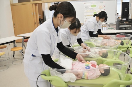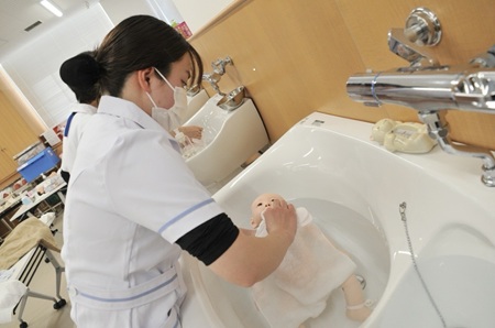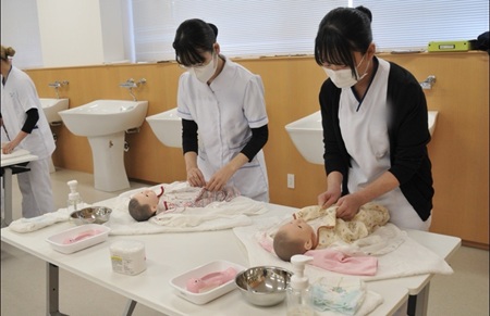 妊婦・産婦・褥婦の観察項目を学び、新生児の健康診査や沐浴などの育児技術を、実際に手を動かして身につけます。